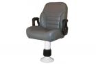 Suspension seats use a combination of shock absorbers, springs, deforming materials and dampers to decellerate vertical forces. There are two distinct seating positions - 'feet on the deck' and 'feet off the deck'. Technology ranges from 'passive suspension' systems to innovative 'semi-active suspension' systems that react to changing conditions. The traditional style of seating in many sport fishing boats is a single seat fitted to a vertical post or pedestal, the difference now is the addition of a shock absorber in the pedestal. Low racing style seats, sometimes used with foot throttles, have limited use on military or commercial craft. Bench or multiple seating is not selected for extreme operations. Open boat or external seating components are manufactured from marine grade metals, closed cell foams and materials that resist exposure to the elements.
